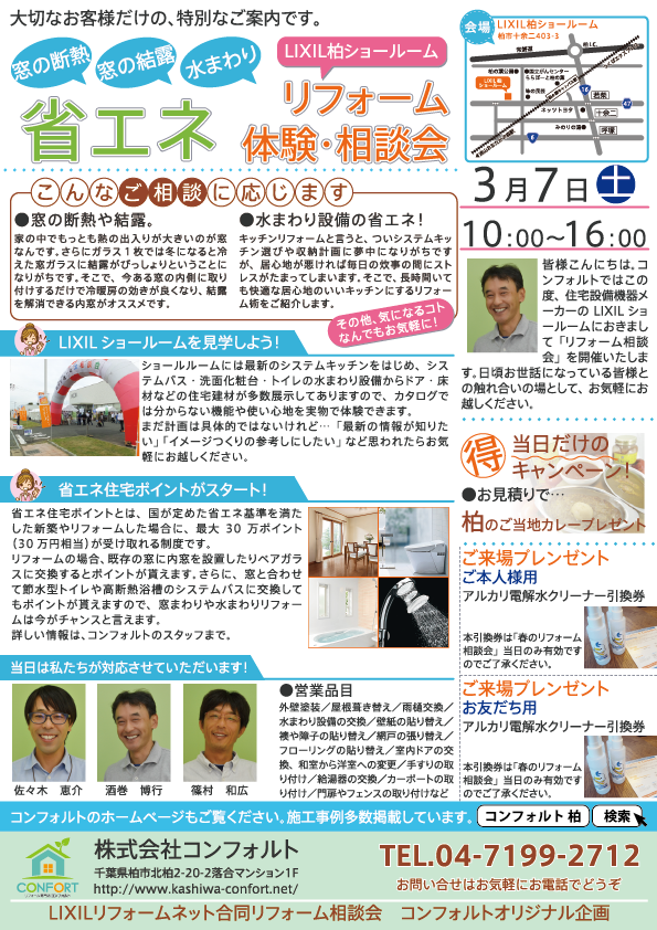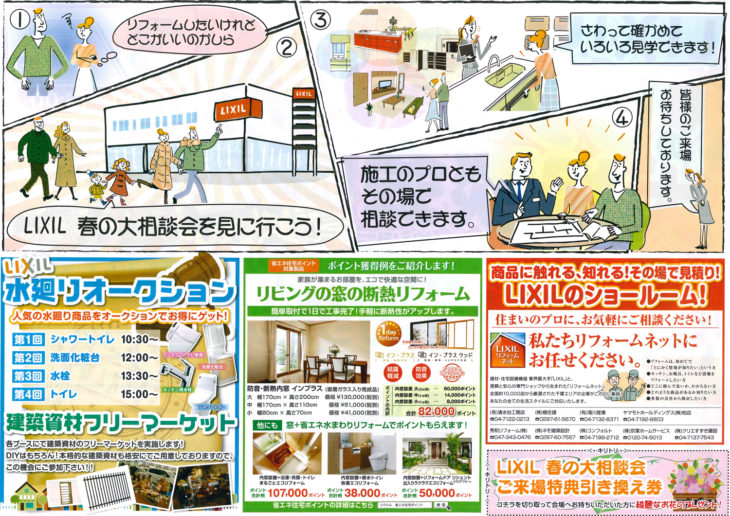 春のリフォーム相談会は、柏市近郊のLIXILリフォームネット登録店が集まった合同リフォーム相談会です。