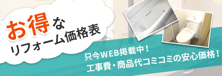 無料見積り・相談 電話で見積り・相談 04-7199-2712 【受付】9:00~18:00【定休日】日曜日 電話で見積り・相談 HOME価格表 価格表 リフォームを考える際に不安になってしまう事といえば、やはり価格の高さです。そこで、コンフォルトは各リフォームの工事内容と価格が一目で分かる、便利な価格表をご用意いたしました!工事費・商品代込みの安心価格でご提供いたします。 フローリング 畳からフローリングに張り替え【ライブナチュラル3P】 ¥220.000円(税別) キッチン クリナップ ラクエラ ¥616,000(税別) バスルーム TOTO サザナ HSシリーズ Nタイプ ¥657,800(税別) トイレ LIXIL アメージュZ+シャワートイレKB ¥140.800(税別) 給湯器 リンナイ・ガスふろ給湯器 ¥160,000(税別) 洗面化粧台 LIXIL オフト ¥88,000(税別) 外壁 外壁塗装リフォーム ¥657,800(税別) 屋根 屋根カバー工法リフォーム ¥722,800(税別) コンフォルトについて 会社案内代表挨拶会社概要アクセスマップ はじめにお読みください スタッフ紹介 OBのお客様はこちらへ 施工事例 施工事例一覧 マンションリフォーム フローリング工事 内装リフォーム 水まわりリフォーム 雨漏りによる改修工事 外壁塗装リフォーム 屋根塗装リフォーム 屋根カバー工法リフォーム 屋根葺き替えリフォーム エクステリアリフォーム お客様の声 お客様の声一覧 お役立ち情報 水まわりまるごとリフォームキャンペーン リフォーム価格表 住まいのコンビニサービス リフォームQ&A リフォームの流れ イベント・チラシ案内 住宅省エネ2026キャンペーン 先進的窓リノベ2026事業 みらいエコ住宅2026事業 給湯省エネ2026事業 お問い合わせ お問い合わせ 無料お見積もり 資料請求 住まいのリフォーム専門店コンフォルト リフォームブログ 記事の一覧を見る RSSを取得する 【年末年始休業のお知らせ 】 誠に勝手ながら、弊社では下記の期間を年末年始休業とさせていただきます。 休業期間:2025年12月27日(土)~2026年1月5日(月) 休業中… >>詳しく見る HOME / ホーム COMPANY / 会社案内 会社案内代表挨拶会社概要アクセスマップ はじめにお読みくださいスタッフ紹介OBのお客様はこちらへ WORKS / 施工事例 施工事例一覧 マンションリフォーム フローリング工事 内装リフォーム 水まわりリフォーム 雨漏りによる改修工事 外壁塗装リフォーム 屋根塗装リフォーム 屋根カバー工法リフォーム 屋根葺き替えリフォーム エクステリアリフォーム VOICE / お客様の声 お客様の声一覧 OTHER / お役立ち情報 水まわりまるごとリフォームキャンペーンリフォーム価格表住まいのコンビニサービスリフォームQ&Aリフォームの流れイベント・チラシ案内住宅省エネ2026キャンペーン先進的窓リノベ2026事業みらいエコ住宅2026事業給湯省エネ2026事業 CONTACT / お問い合わせ お問い合わせ無料お見積もり資料請求 〒277-0832千葉県柏市北柏2-20-2落合マンション1F TEL 04-7199-2712/FAX 04-7199-2713 Copyright © 2013 コンフォルト All Rights Reserved.
