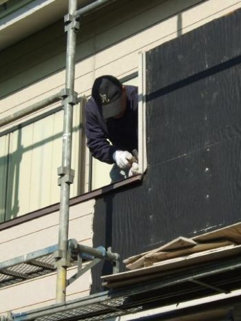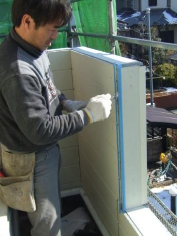 ベランダ部分のサイディング貼り。
