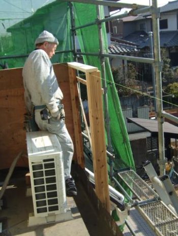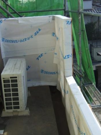 ベランダ造作後に透湿紙は貼ります。