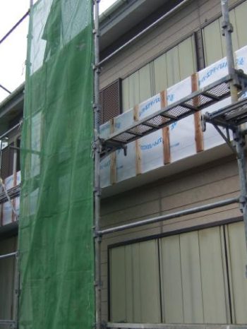 足場の組み立て。