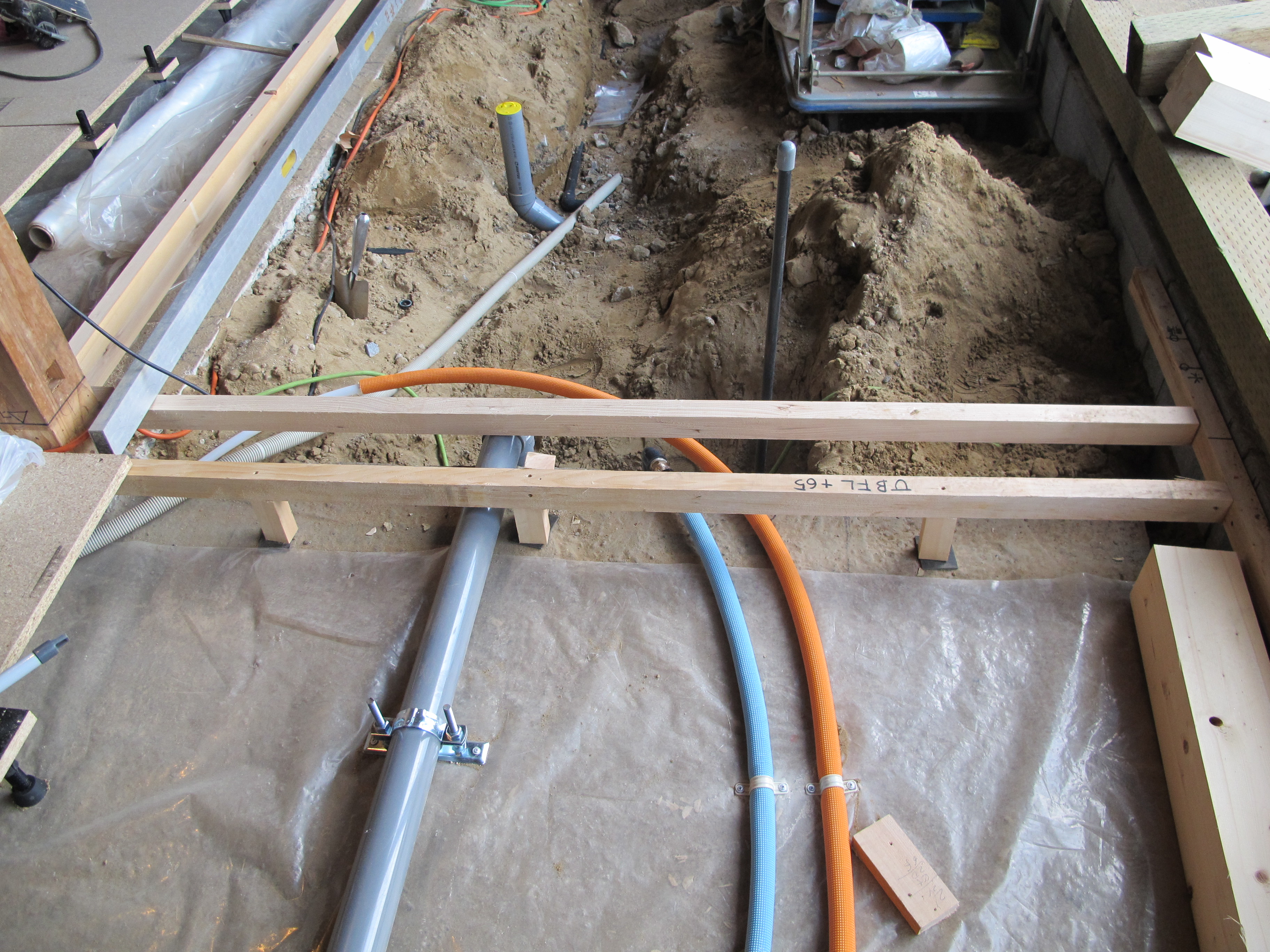 キッチンの位置に合わせて給排水管を立ち上げます。