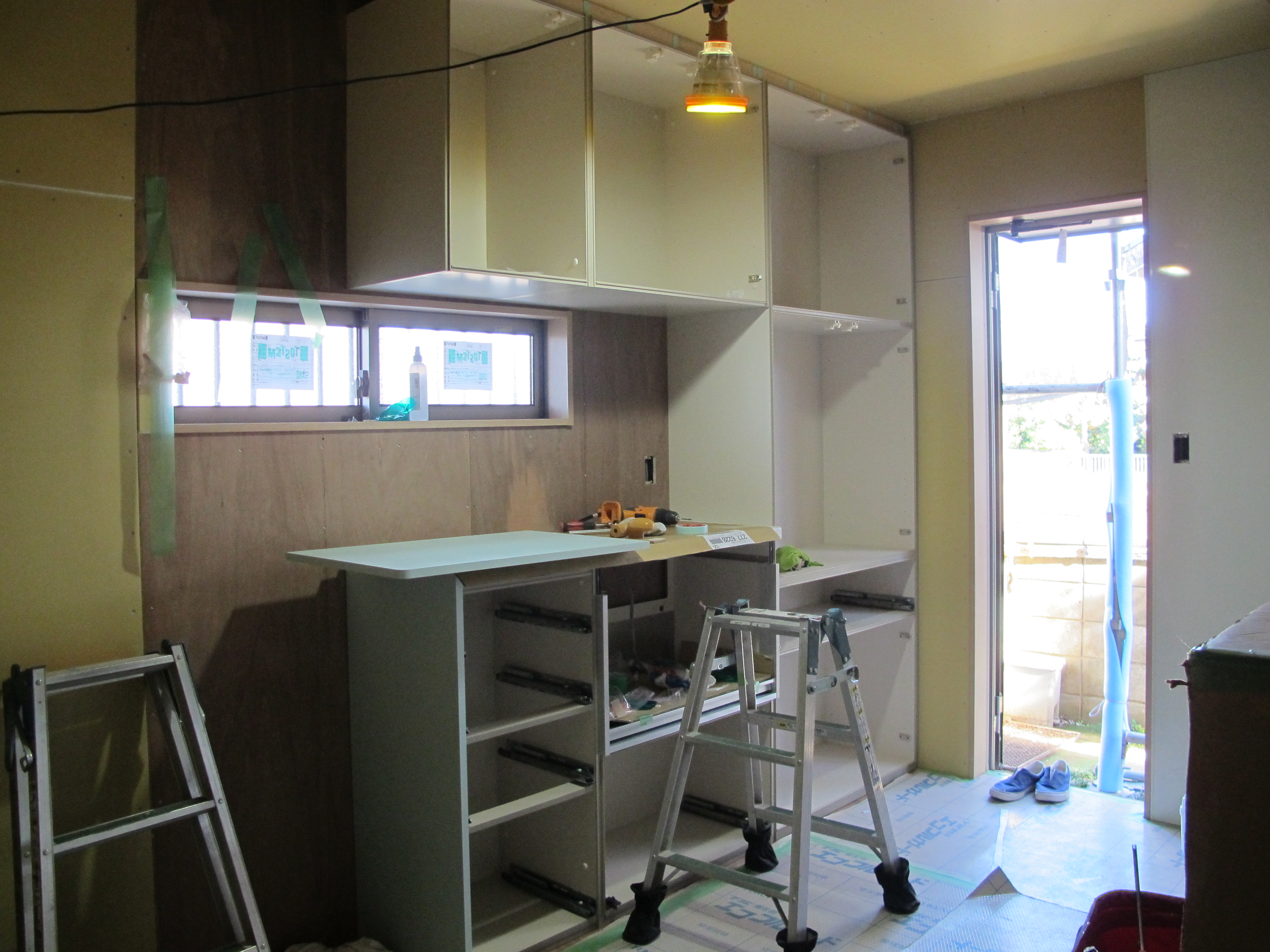 壁付I型キッチンを造作対面型で吊戸棚も取り付けしていないので、とても開放的で明るいキッチンになりました。