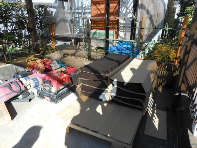 既存のセメント瓦を撤去したところ。