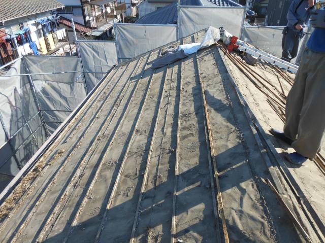 瓦桟を撤去し、キレイに掃除をします。