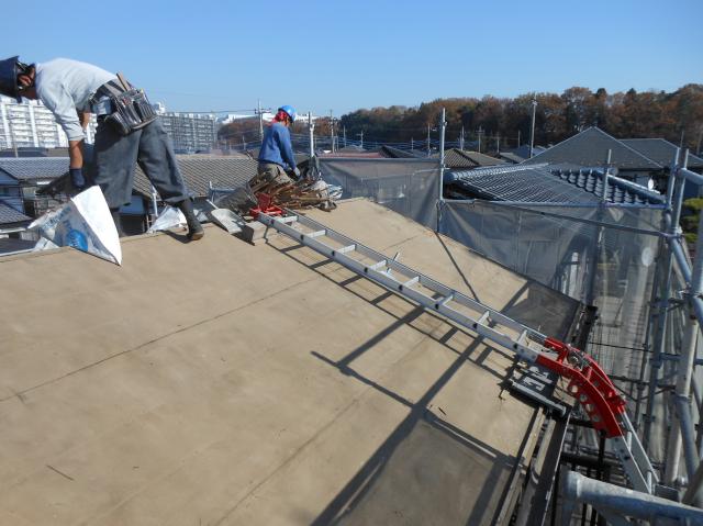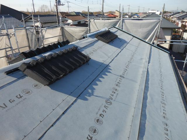 新しい防水ルーフィングを貼ります。 (ゴム化アスファルトルーフィング)