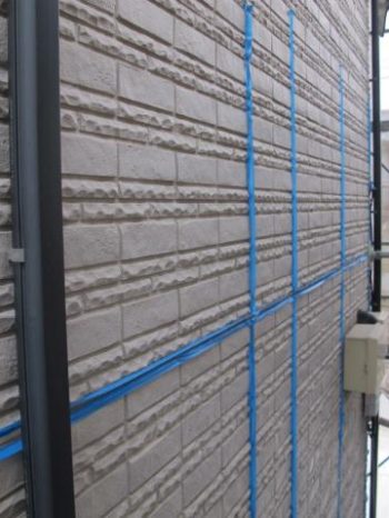 既存のシーリングを撤去して、マスキングテープを貼ります。