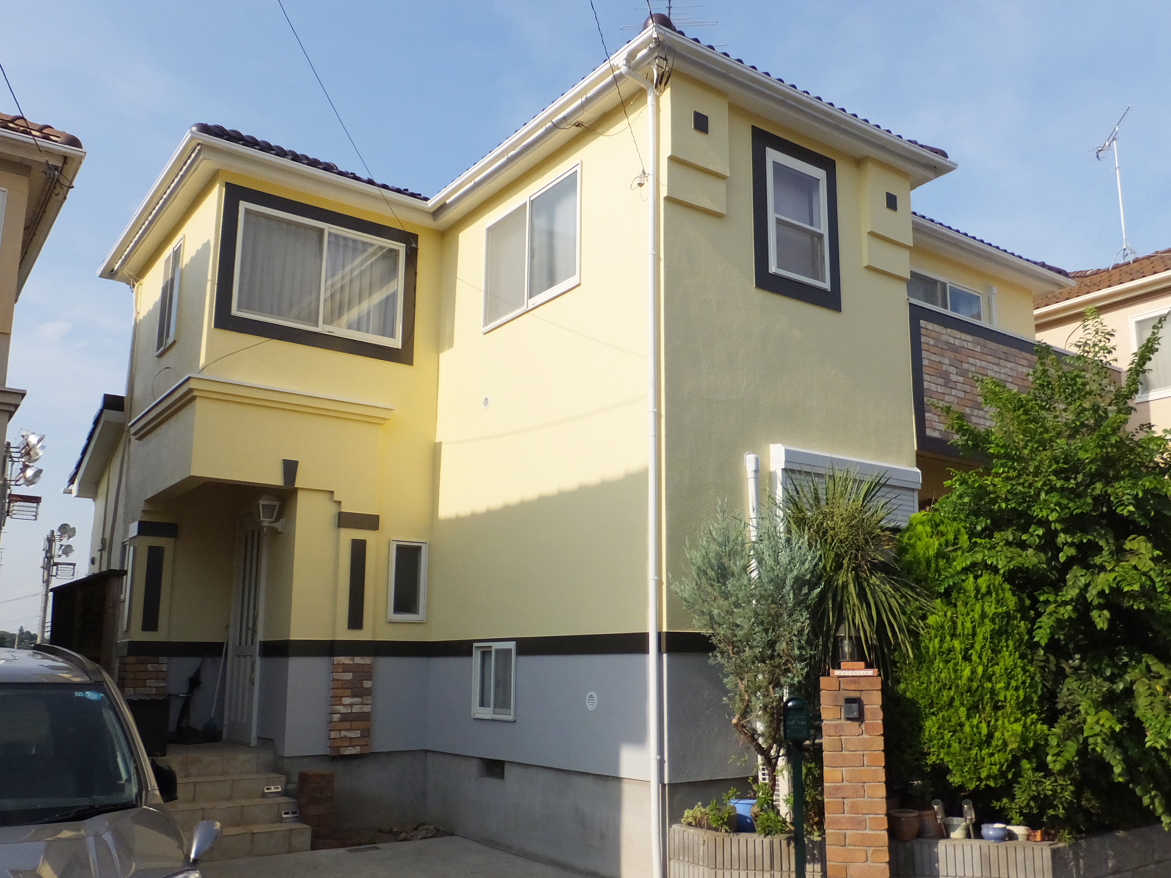 屋根・外壁ともにシリコン樹脂塗料を使用して、外壁はイエロー系にイメージチェンジして明るい印象に仕上がりました。