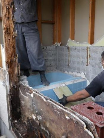 | お客様のご要望 | コンフォルトにて屋根重ね葺きと外壁塗装リフォームをさせていただいた白井市のT様。 今回は、浴室洗い場の床と壁タイルとの取合いから水が漏れ、基礎に水染みが出来ているので浴室リフォームしたいとご相談がありました。 |