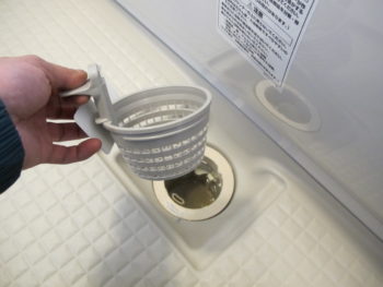 くるりんポイ排水口。渦の力で髪やゴミをまとめるので、髪やゴミが流れをふさぐことなくスムーズに流れ、汚れが少なくなります。