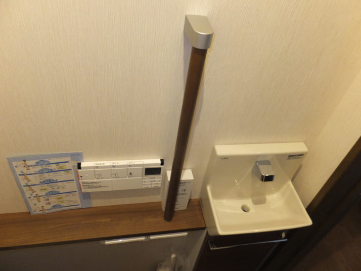 便器をタンクレスにしたことで、LIXIL・コフレルシリーズの手洗いカウンターを新設しました。手洗いは自動水栓を選択し、清掃用具をしっかり収納出来ます。